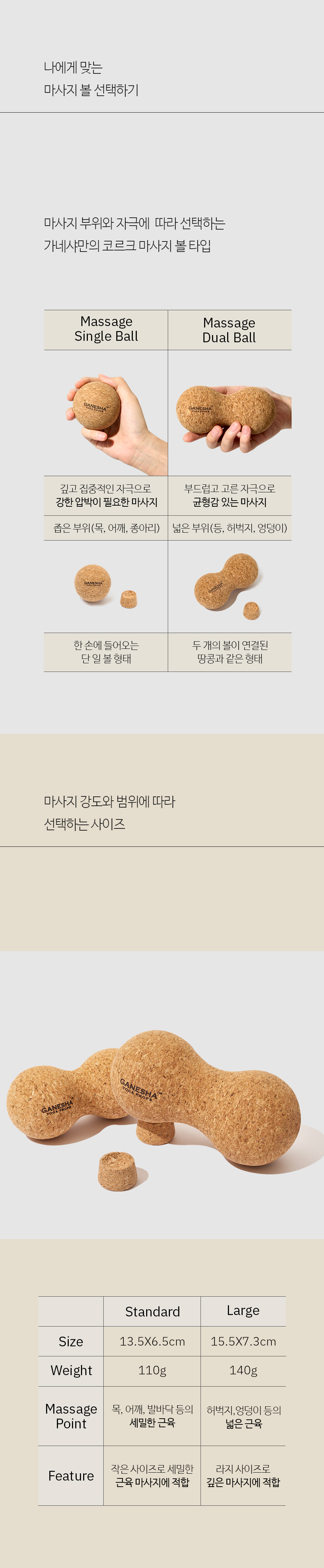 코르크 마사지 듀얼볼(스탠다드 ,라지) , 마사지볼 홀더