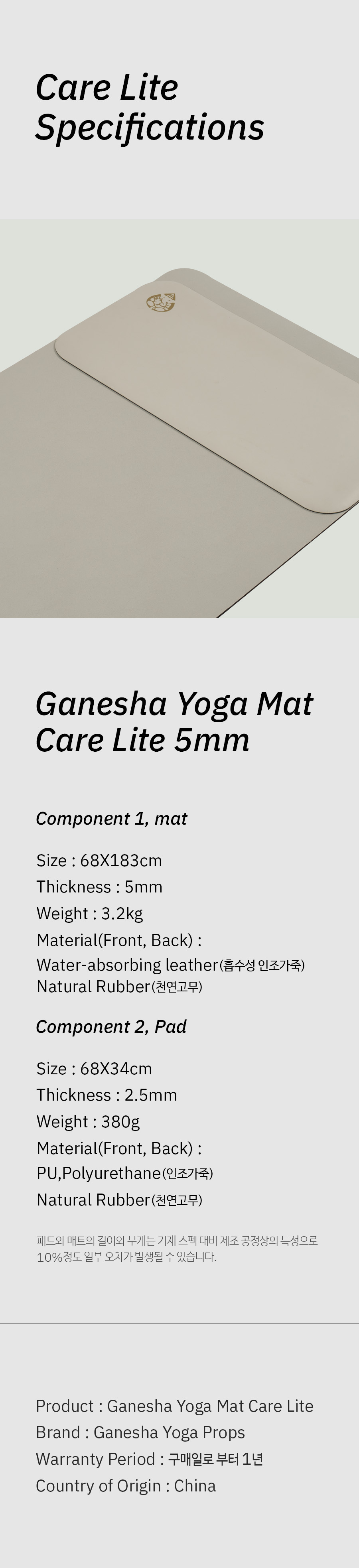 가네샤 요가매트 케어라이트 매트는 밑면에는 기존 오리진 시리즈와 동일한 천연 고무를 사용했습니다.