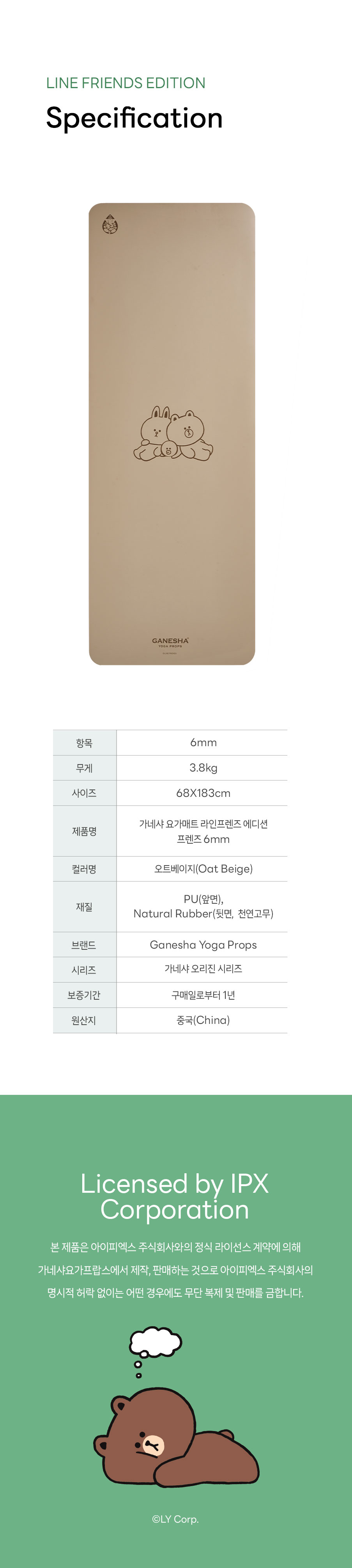[Ganesha Yoga Props]Ganesha Yoga Mat LINE FRIENDS Edition 6mm, Friends Oat Beige
